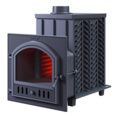 • Панорамная чугунная герметичная дверца с жаростойким стеклом.