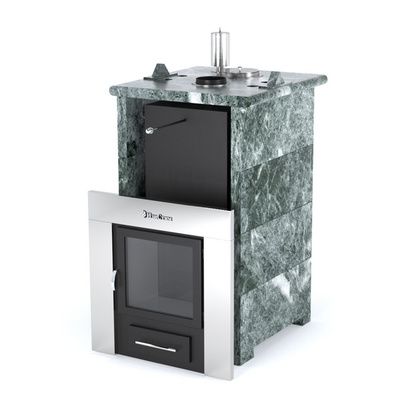 Газовая печь для бани ИзиСтим «Сочи» в трёхстороннем кожухе из змеевика в Томске